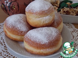 Paczki. Пончиков разных делала немало, но никогда в жизни у меня они так не увеличивались в объеме при жарки, как эти карапузы! Просто мячики получились! А в середине, как по заказу, в каждом без исключения, образуется полость для заполнения джемом. Просто волшебство какое-то! Пончики мягкие, рыхлые, тают во рту. Непременно попробуйте!
