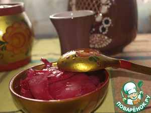 Делала на глаз, свеклы положила больше, без моркови. Капуста уже сегодня ярко - бордовая - красивая!