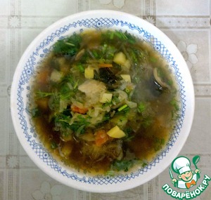Рецепт «Луковые щи с квашеной капустой и грибами»:
