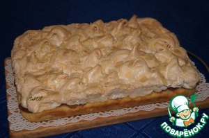 Температуру снизить до 150*С и печь пирог, пока пена не загустеет и слегка не зарумянится. Тут надо постоянно следить и регулировать температуру в духовке, чтобы белки не подгорели. Я несколько раз то увеличивала, то уменьшала температуру. Короче, отходить нельзя! -