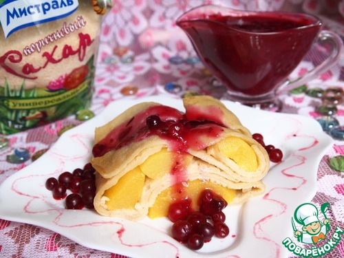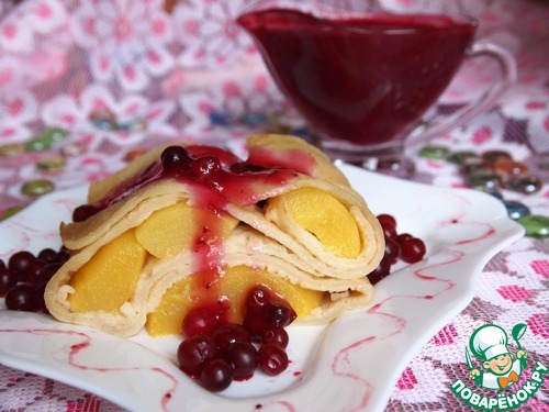 Рецепт «Заварные блинчики с персиками и клюквенным соусом»: