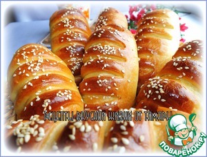 Поставить булочки на расстойку минут на 20. Затем смазать яичным желтком (с молоком) и посыпать кунжутом.