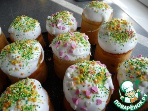 P.S. Сейчас очень удобно делать в готовых бумажных формах, если такой-же дилетант как я, хочет над формой пышную шапочку - надо накладывать не 1/3 формы, а 1/2 и больше (учитесь на чужих ошибках