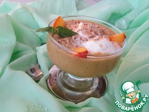 Добавить 2-3 шарика пломбира, украсить дольками нектаринов, листочками мяты и сразу подавать.
