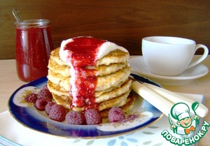 К оладушкам подаем сметану или джем, или и того, и другого побольше: