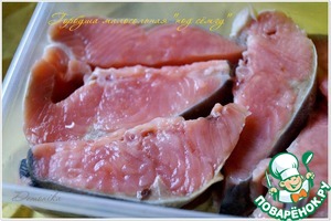 Я взяла крупные куски филе на коже, и солила час, вышло нежнейшее, сочное мяско