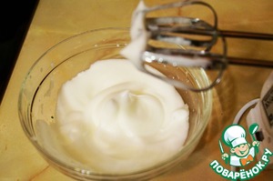 Взбиваем белки с несколькими капельками лимонного сока и щепоткой соли до образования пушистой пены.