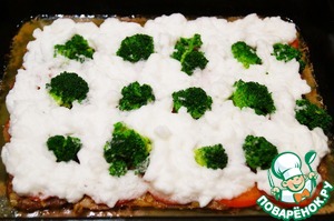 Чайной ложкой распределяем белковую пену среди брокколи. Вот и выпал в нашем овощном саду первый снег!