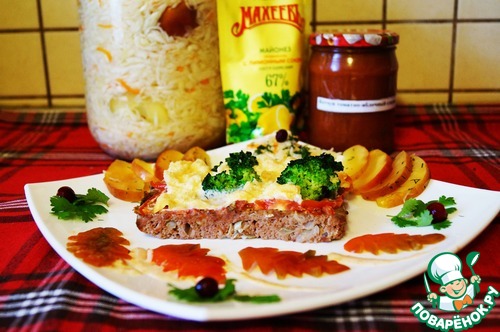 А чтобы получить совсем осеннюю картинку, подаём запеканку с квашенной капустой с яблоками и соусом из смеси домашнего кетчупа с майонезом (в пропорции 1:1).