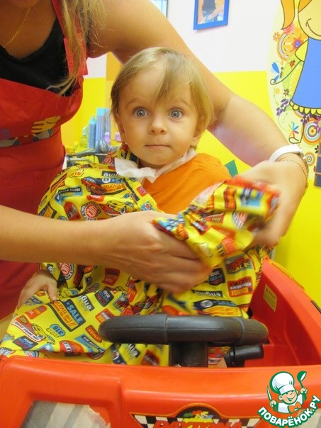 [cut] Вот и мы не знали, что нам делать. Бабушки орут: "Надо!" А нам вроде и жалко красивеньких волос. Да и как его стричь-то первый раз? Подскажите кто? Машинкой? А не испугается? Ножничками? Не равномерно будет! А что он в это время будет делать? Спать? Кушать? Мультик смотреть? И тууууут... Мы вдруг нашли сайт сети детских парикмахерских "Весёлая расчёска". Были приятно удивлены тем, что такое бывает. У них есть в прайсе "Первая стрижка", где родителям в конвертике вручают первый срезанный локон, всё это запечатляют на фото\видео и пересылают маме с папой на почту либо копируют на флешку. Кроме того сама процедура проходит в весьма весёлой обстановке. Кроху садят в кресло-машину, мастер знакомит его с машинкой для стрижки, которая "жужжит как пчёлка"