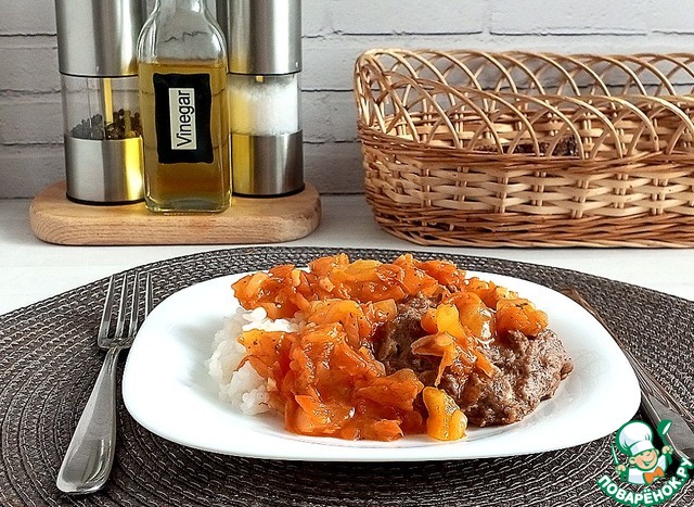 Ужин в 17-00. Нужно какую-то белковую еду съесть. Я приготовила куриные котлеты, запечённые в духовке. Я редко котлеты обжариваю на сковороде. Потушила кабачок с овощами (морковь, лук, перец стручковый острый), добавила томатной пасты. Сварила краснодарский рис в дополнение к гарниру.