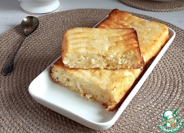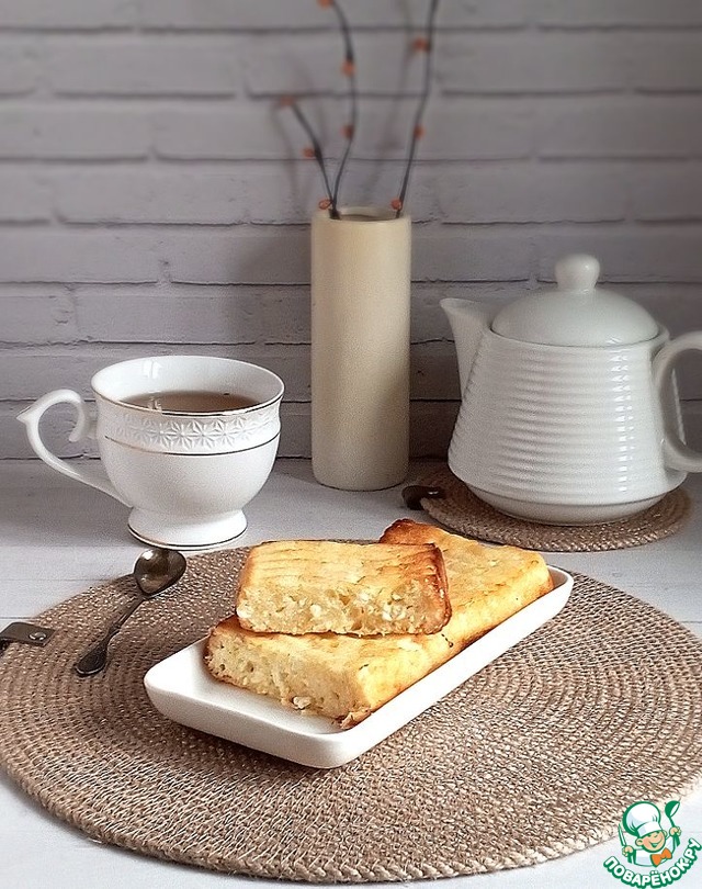 На полдник сделала сырник из одной пачки творога с манной крупой, ванильным сахаром, сливочным маслом и яйцом. Сырник делала в форме для хлеба со сторонами 21 на 11 см. Поэтому он у меня не толстый получился ~3 см высотой.
