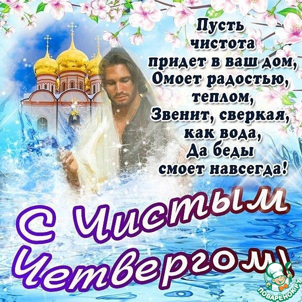 Поздравляю с Чистым четвергом! Желаю чистоты везде: и в мыслях, и в доме, и в сердце! Пусть жизнь будет долгой и счастливой, а неудачи, огорчения и беды пусть всегда обходят стороной!