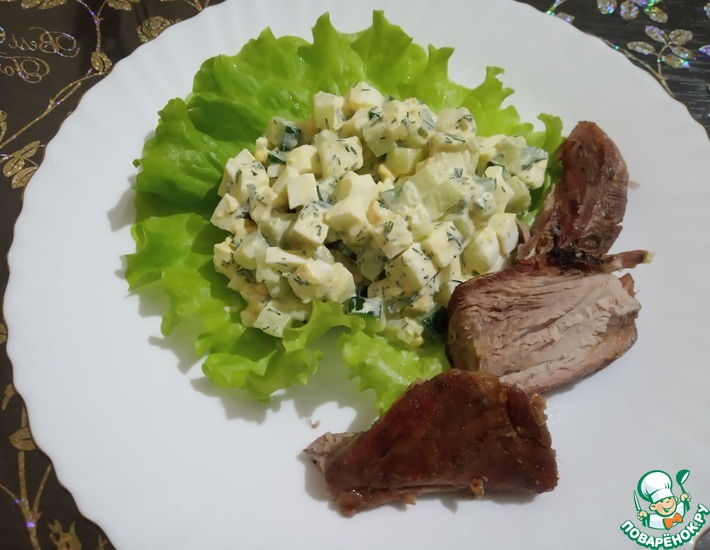 А сегодня парой для индейки станет очень простой, но очень вкусный салат из огурцов и яиц.