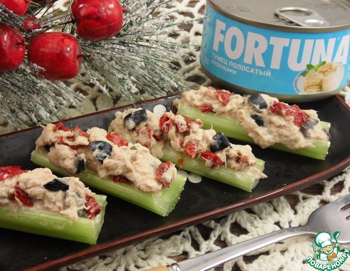 Рецепт «Сельдерей, фаршированный тунцом»: