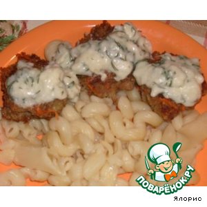 Далее - варианты: либо котлетки заливаем соусом и сразу подаем, либо заливаем их соусом и отправляем немного потушиться в микроволновку (под крышкой), на 3-4 минутки.