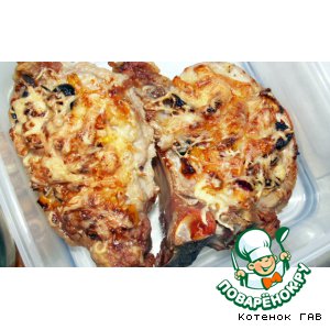 Корейку немного отбить. У меня были ОЧЕНЬ толстые куски. Пришлось отбить немного, да ещё и сверху немного майонеза, чтобы не было сухим мясо.
