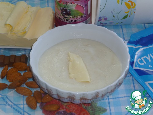- Чтобы разнообразить вкус манной каши в нее можно добавить (на ваш вкус) сгущенное молоко, сливки, сироп, ягоды, растопленный шоколад, орехи.