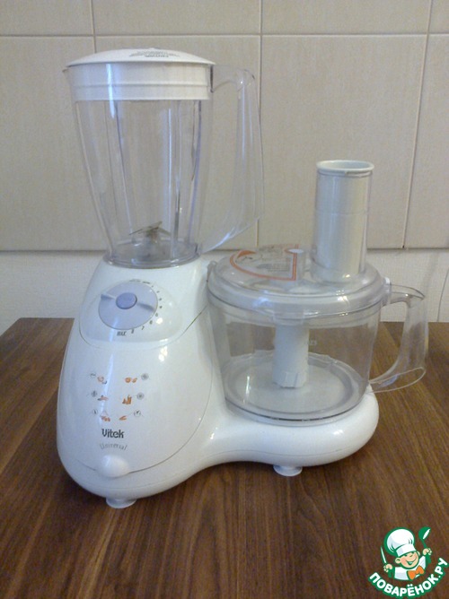 Есть в нем блендер и чаша с насадками для перемешивания, натирания, измельчения и взбивания. В блендере можно взбивать коктейли, измельчать мягкие фрукты и супы-пюре. Коктейли-смузи поначалу шли неплохо, а потом как-то сдали позиции. Супы-пюре не готовлю. И мягкие фрукты особо измельчать не приходится. В чаше есть бесценная насадка – нож для измельчения. Вот им я действительно пользуюсь, он удивительно острый и за 10 секунд измельчает все, что угодно (печенье для сладкой колбасы, зелень, лук, перец). Терки тоже острые, натираемый продукт не разбрызгивается и не разбрасывается, но (не знаю, это именно в этой модели, или во всех комбайнах) продукты натираются не до конца. Т. е. от каждой натираемой морковки и т. п. остается цельный кусок. Поэтому на терке в комбайне измельчаю только тыкву - она почти растворяется в процессе приготовления, т. ч. кусочки - не помеха. Венчик для взбивания не смог сдать вступительные экзамены: взбивает-то он как будто нормально, но на дне остается невзбитая полоса белков толщиной в палец ( Насадка для смешивания готовит тесто кексовой консистенции хорошо, только вот извлекать тесто из чаши не слишком удобно) Таким образом, на практике по-настоящему полезным оказался лишь нож для измельчения. Так что куда удобнее для меня был бы погружной блендер с дополнительной насадкой-венчиком, чашей и ножом для измельчения. И стоит он раза в 3 дешевле комбайна) Так что делайте выводы, нужен ли вам комбайн)