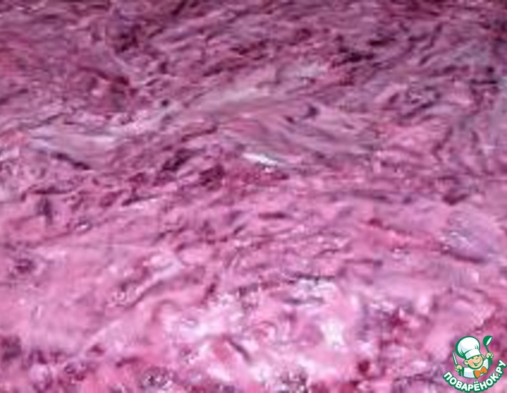 Тогда верхний слой майонеза на свекле станет розоватым и немного янтарно-прозрачным, и его вкус слегка изменится, получится именно определённая "фишка".