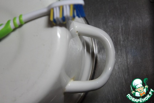 Вокруг ручек кастрюль и кружек часто образуется налёт. Под ободками кастрюль та же проблема.