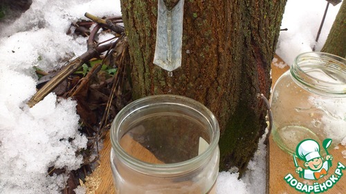 В теплую солнечную погоду сок набирается очень быстро. За три-четыре часа примерно пол-литровая баночка. Шесть таких баночек = три литра сока.