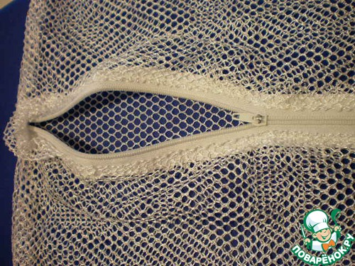 И вот такую вещицу, я думаю, что она есть почти у каждой хозяйки- мешочек для деликатной стирки (ну, если и нет, то приобрести ее несложно, она есть в любом хозяйственном)