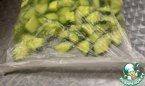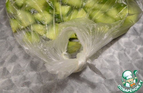 Складываем овощи в пластиковый пакет. Главное, пакет должен быть без дырочек