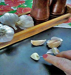 Вы случайно поранились, разделывая мясо или рыбу? Зеленка, йод и прочее запачкают вашу руку, а работать нужно дальше. На помощь придет чеснок. Он же всегда рядом. Он заменит нам аптечку!