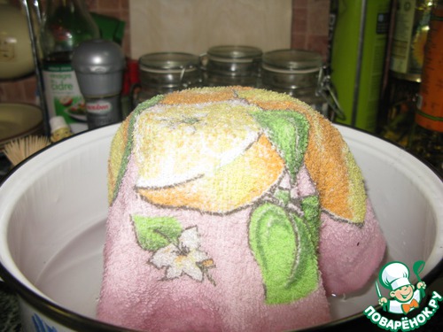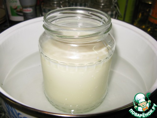 А затем накрыть ёмкость с молоком чистой салфеткой, края которой погрузить в воду кастрюли или миски.
