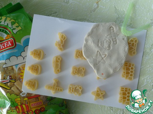 В помощь макаронные изделия или их можно заменить детскими пластмассовыми штампиками.