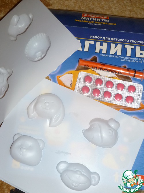 Так же для молдов можно использовать детский набор для творчества, таблетки подойдут для оттиска на мастике, шприц для нурофена можно использовать для украшения торта ( набрать в него мастику, разогреть в микроволновке и украшать торт)