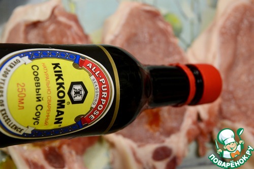 Сначала маринуем мясо в соевом соусе. Можно добавить ещё какой-нибудь соус или приправу.