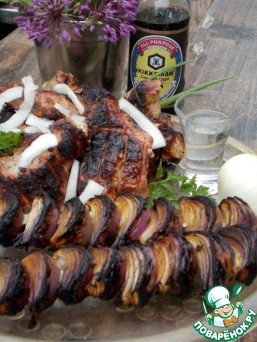 4 - Если Вы предпочитаете луковый маринад, то рекомендую лук пропустить через мясорубку. На 1 кг. мяса обычно берется 1 кг. лука, соль и специи.