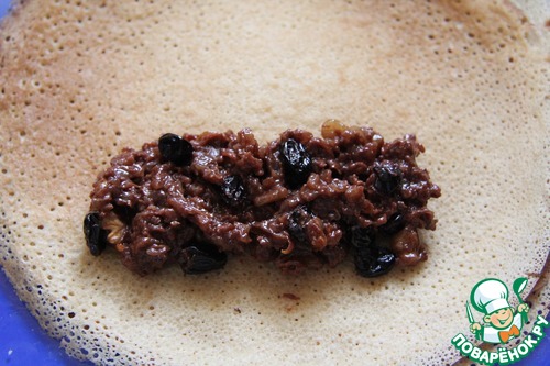 2. Не кладите начинки слишком много, иначе блин после сворачивания порвется!