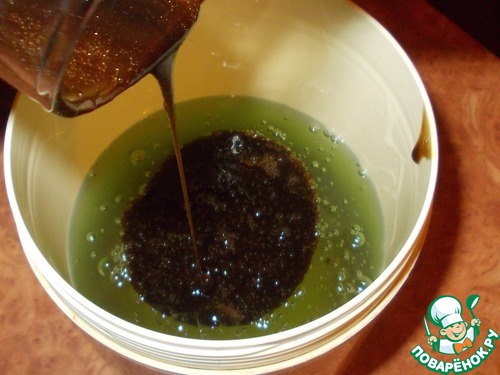 3. Размешиваем. Они довольно быстро начинают растворятся, окрашивая шампунь в коричневый цвет.