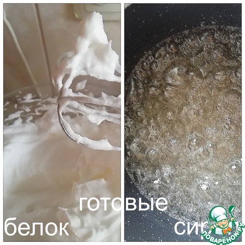 рекомендуют начинать взбивать белки тогда, когда всыпали сахар в воду. Сначала взбивать на маленькой скорости, потом увеличить до максимума. Белки должны быть взбиты до устойчивых пиков, и при переворачивании миски, не падать.