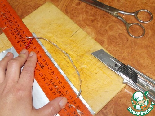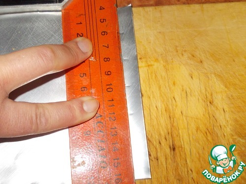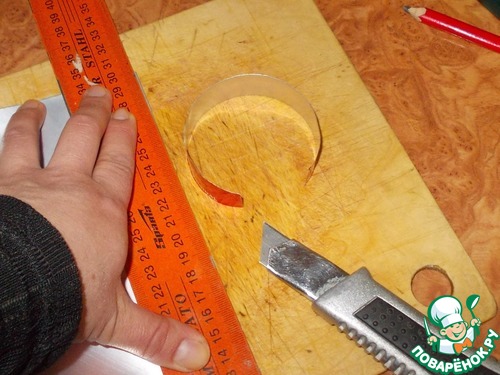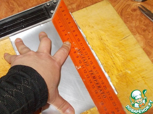 11. Теперь выставляем линейку на наши меточки, которые находятся на одном уровне и отрезаем с помощью ножа полоску.