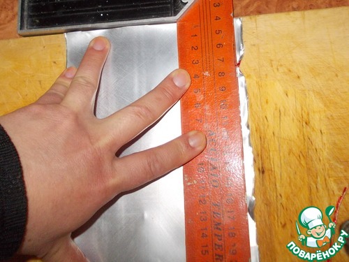 10. Оптимальная ширина вырубки это 2 см, поэтому делим ширину нашего листика жести на отрезки по 2 см и делаем меточки карандашом или фломастером. Такие же метки делаем и со второй стороны листа.
