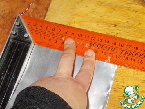 7. С помощью линейки надо подравнять этот край. Вот тут очень удобно применить линейку с прямым углом, чтоб избежать неровных линий...