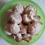 Я никогда не мою шампиньоны, чтобы они не набрались воды. Простой способ почистить грибы: в чашку с грибами добавляю 4-5 ложек муки, аккуратно трясу чашку, чтобы мука обволокла все шампиньоны и обчищаю муку бумажной салфеткой. Вместе с мукой счищается и грязь. И не страшно, если немного муки останется, при жарке она не помешает.