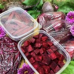 4. Нарезаем очищенную свеклу кубиками, выкладываем в контейнеры. Такая заготовка подойдет для винегрета и салата.