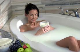 Ванна красоты – молочная ванна, которую принимала великая Клеопатра, чтобы оставаться постоянно молодой и красивой. В чем же польза такой ванны? Молоко способно смягчить и увлажнить кожу, делая ее эластичной и нежной. Она уменьшит количество морщин, а постоянное принятие такой ванны сделает вашу кожу светлее и омолодит ваш организм. Для того чтобы приготовить молочную ванну, не нужно наполнять ее до верха молоком, достаточно 2 – 3 стакана теплого молока с растворенными в них 2 ст. ложками меда. Выливаем молоко в воду, ванну принимаем не более 20 минут, а вода не должна быть горячее 36°. Рекомендуется проводить данную процедуру 3 раза в неделю.