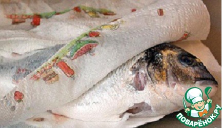 Перед обжариванием рыбу желательно промокнуть от влаги салфеткой или подсушить на жёсткой белой бумаге.