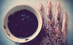 Смешать 1 столовую ложку натурального меда, 1 чайную ложку растительного масла (оливкового или миндального) и 2 чайные ложки кофейной гущи.