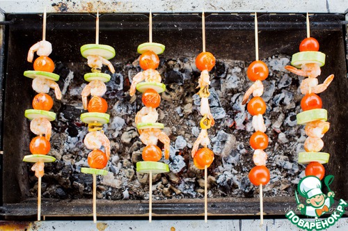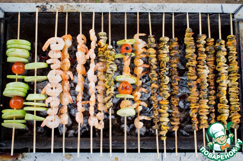 Отличные шашлыки получаются из креветок, мидий и других морепродуктов. Очень легкие, вкусные и прекрасно сочетаются с овощами.