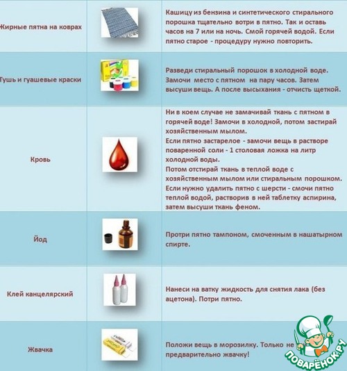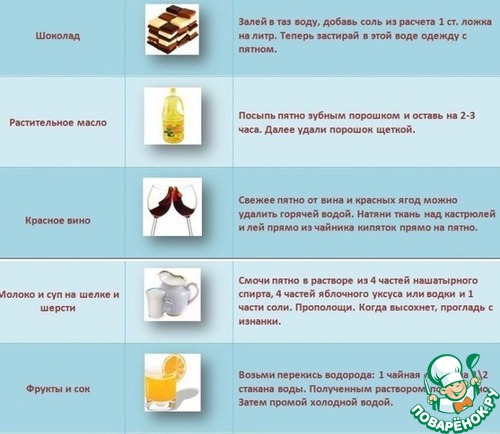 Домашние пятновыводители-шпаргалка