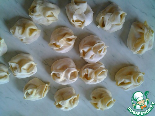 Так проделать со всеми квадратиками, и у вас получатся красивые мантушки!