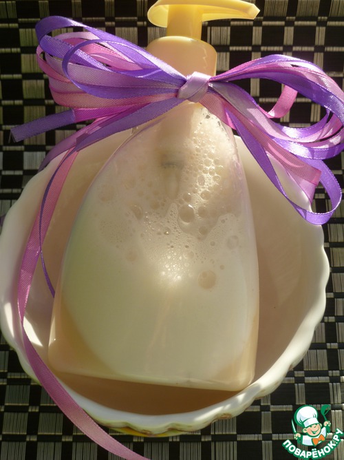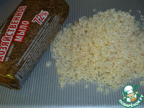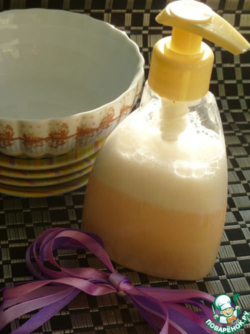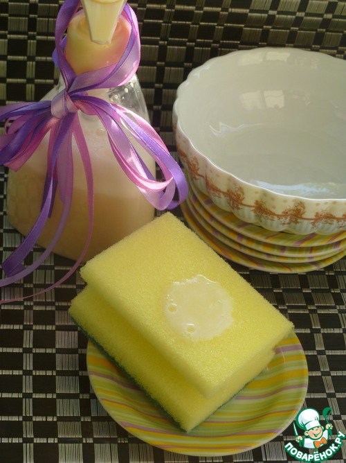 Количество воды можно добавлять в зависимости от того, какое средство вы хотите получить. Влив не много воды (1/2 ст.), получаем гелеобразное средство, которое можно набирать губкой. Влив 1 ст. (даже чуть больше), получим жидкое средство, его можно будет перелить в бутылочку с дозатором.