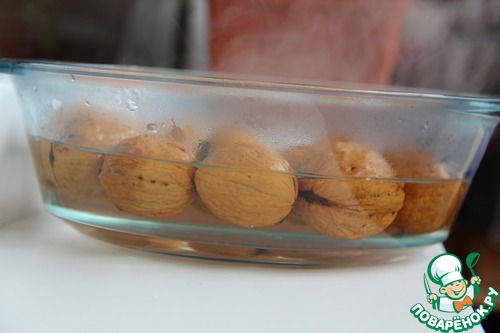 Все очень просто. Грецкие орехи складываем в глубокую миску и наливаем в нее кипяток.